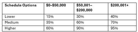 Table 4: Example progressive tax schedule